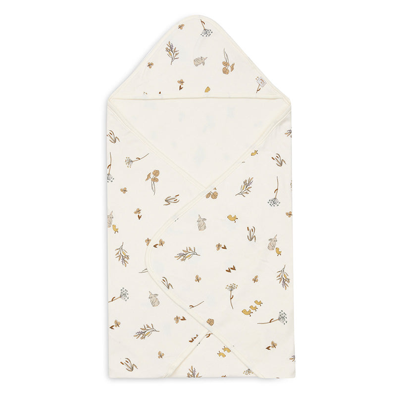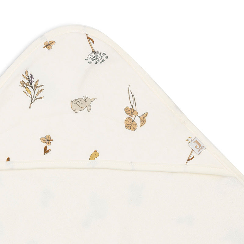 Met de badcape Riverside van Jollein wordt afdrogen na het badderen of zwemmen een heerlijk moment. De cape is bedrukt met het schattige Riverside printje vol konijntjes, eendjes en kleine plantjes langs de oever. De capuchon houdt het hoofdje lekker warm, zodat je kindje geen warmte verliest na het bad.