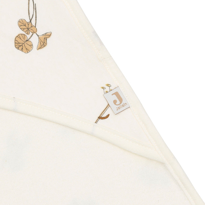De binnenkant is uitgevoerd in de kleur Ivory en gemaakt van zachte badstof die vocht snel en efficiënt opneemt. Dit maakt de cape mild en comfortabel voor de gevoelige babyhuid. Dankzij het handige ophanglusje droogt de badcape makkelijk na gebruik en blijft hij altijd klaar voor de volgende keer.