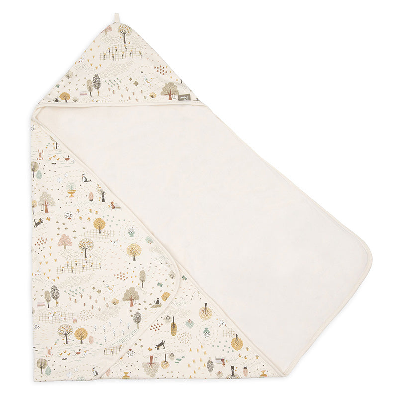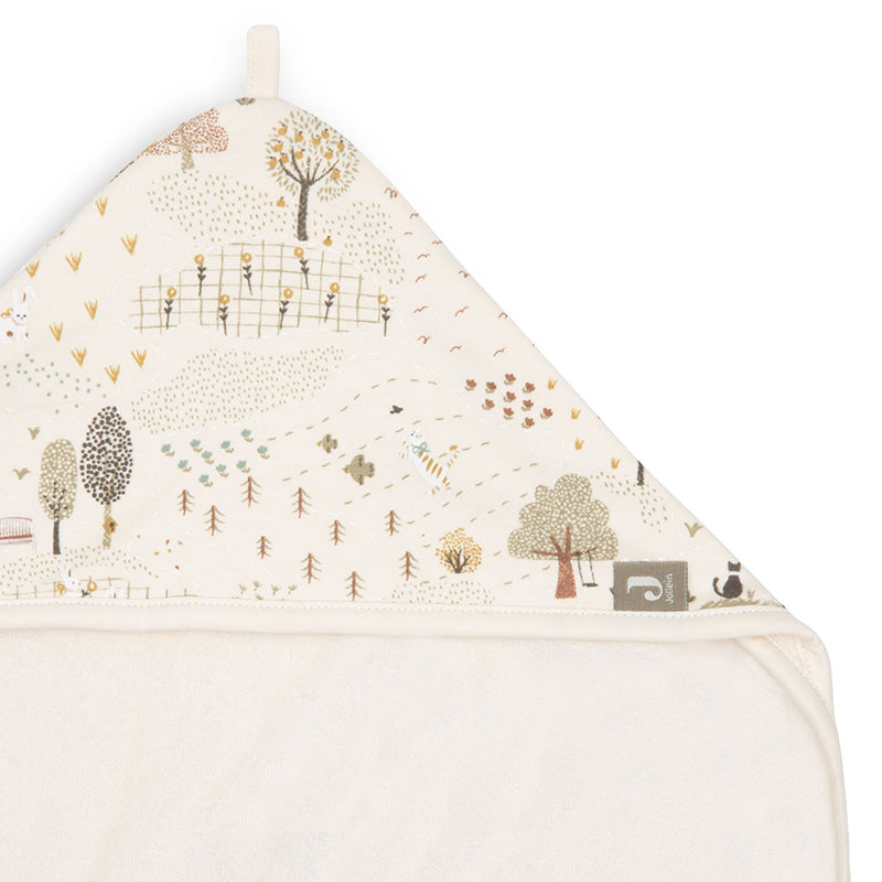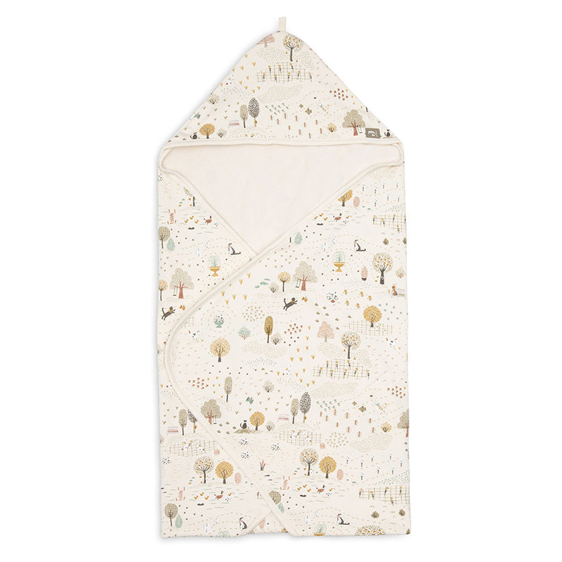 De badcape Tiny Parc van Jollein is een must-have na het badderen. De buitenkant is gemaakt van zachte jersey stof met een speelse all-over print uit de Tiny Parc collectie, terwijl de binnenkant is gevoerd met zachte oatmealkleurige terry badstof. Zo blijft je kleintje heerlijk warm en comfortabel.